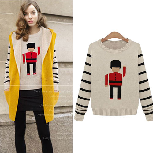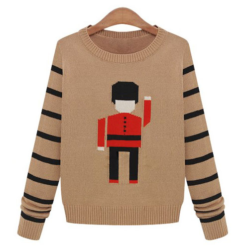 The Solider Crewneck will protect you from a plain look and keep you in stylish.This Sweater features black stripes on the sleeves, with a solider graphic in red and black at the center front,ribbed hem,neckline and cuffs.