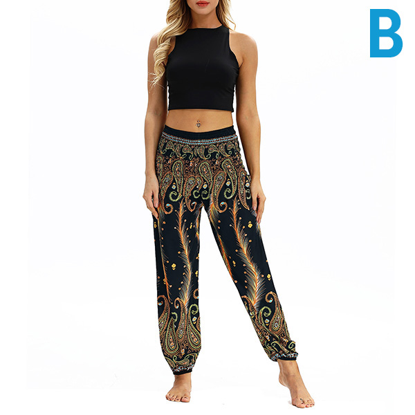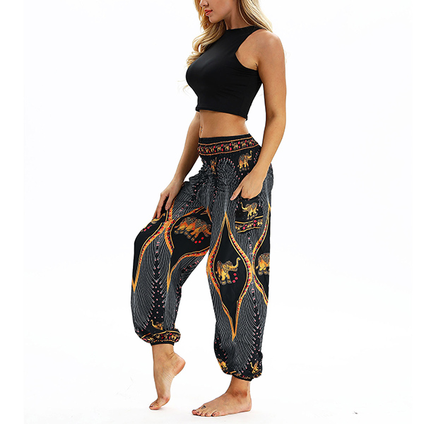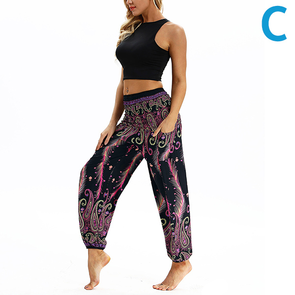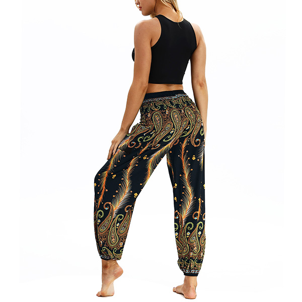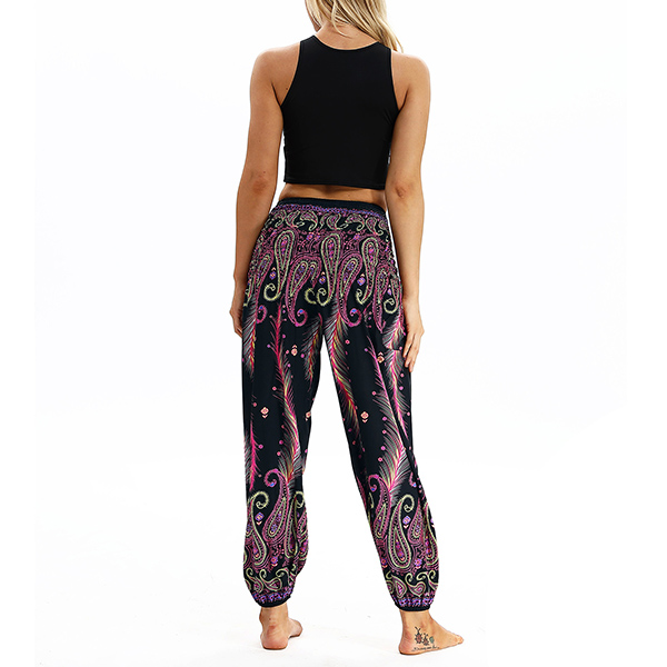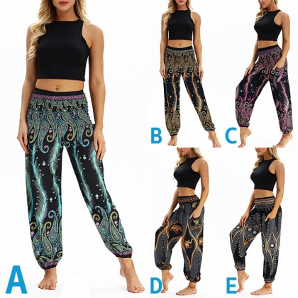 Casual Bohemian Style Floral Printed Loose Pants for Yoga and Dancing