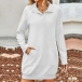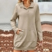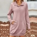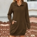 Casual Button Stand Collar Long Sleeve Kangaroo Pocket Sweatshirt Dress