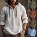 Casual Button V-neck Long Sleeve Drawstring Hooded Shirt for Men