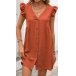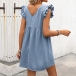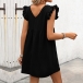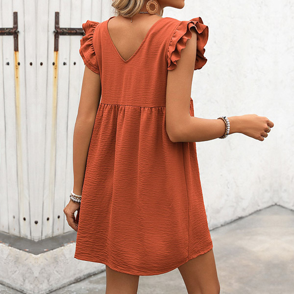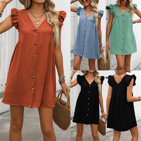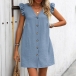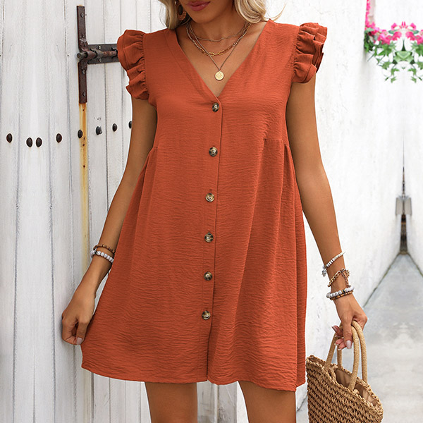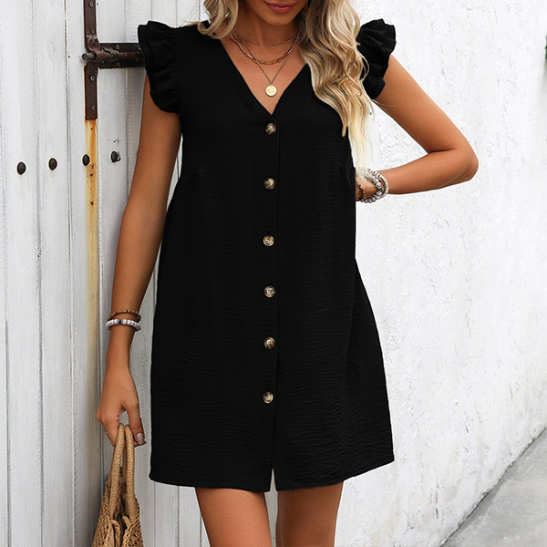 Casual Button V-neck Ruffle Cap Sleeve Mini Dress