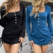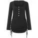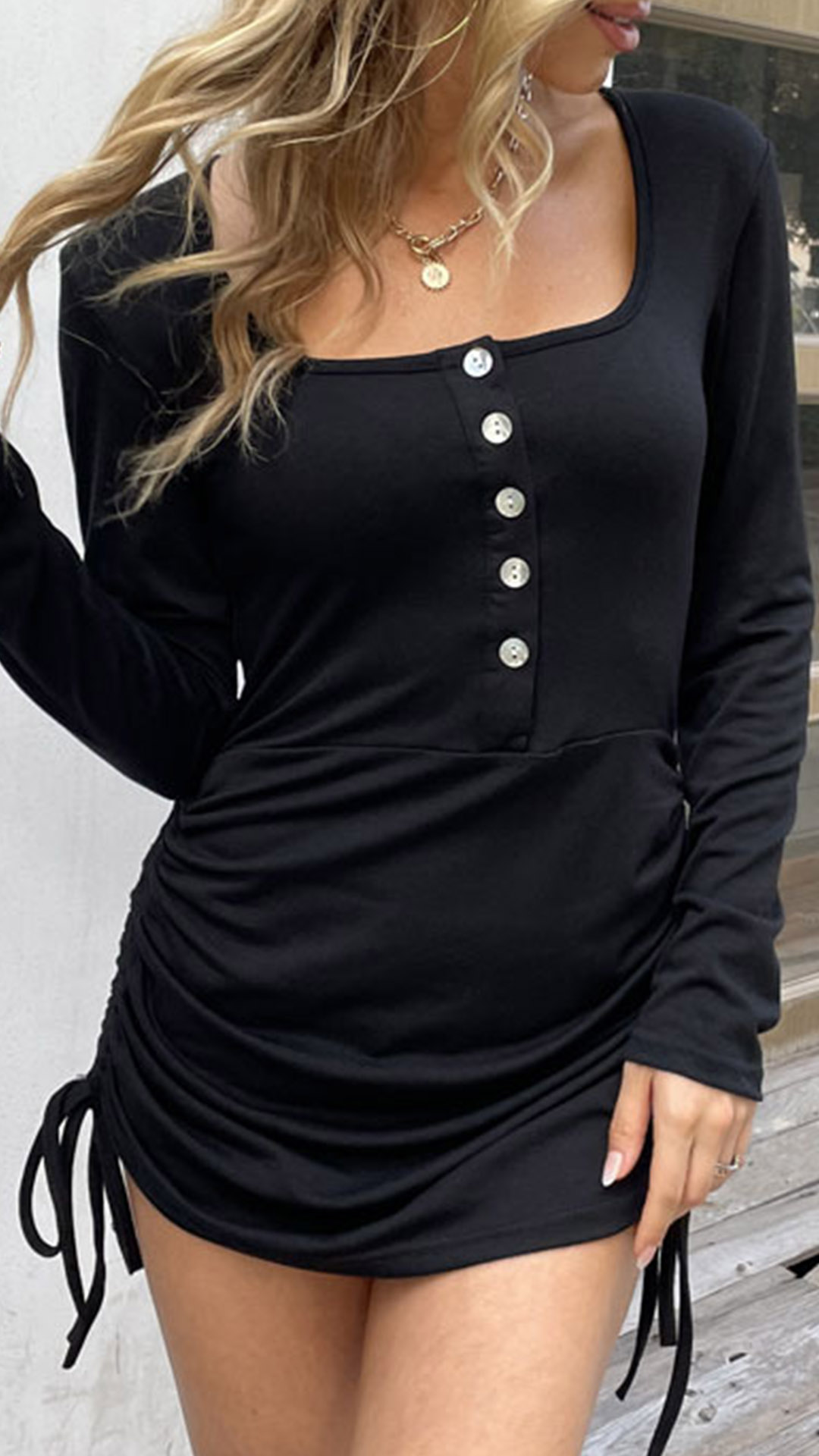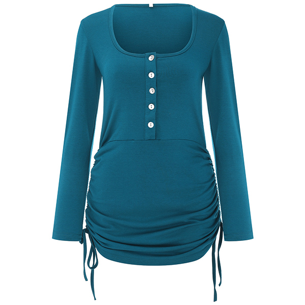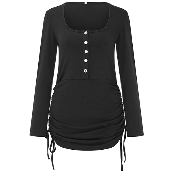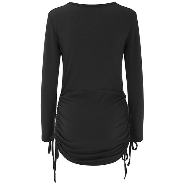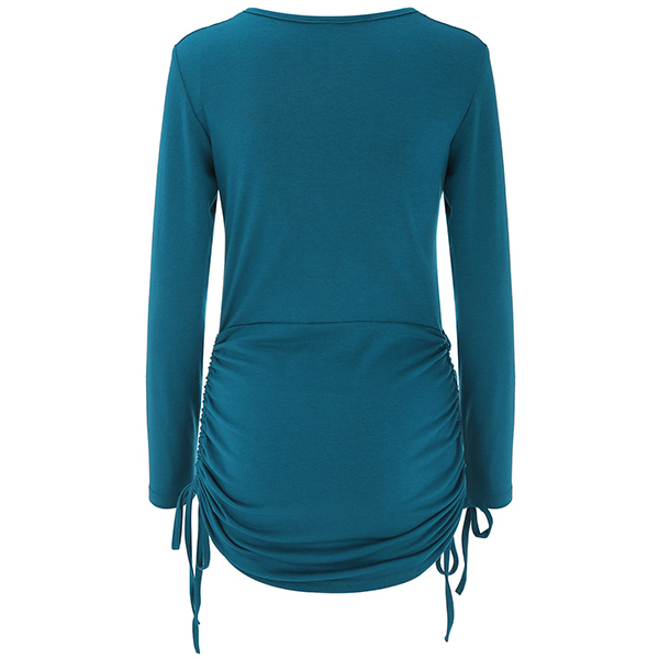 Casual Buttoned Round Neck Long Sleeve Side Drawstring Bodycon Dress
