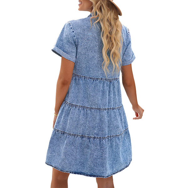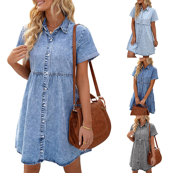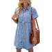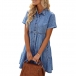 Casual Buttoned Short Sleeve Polo Neck Maternity Denim Dress