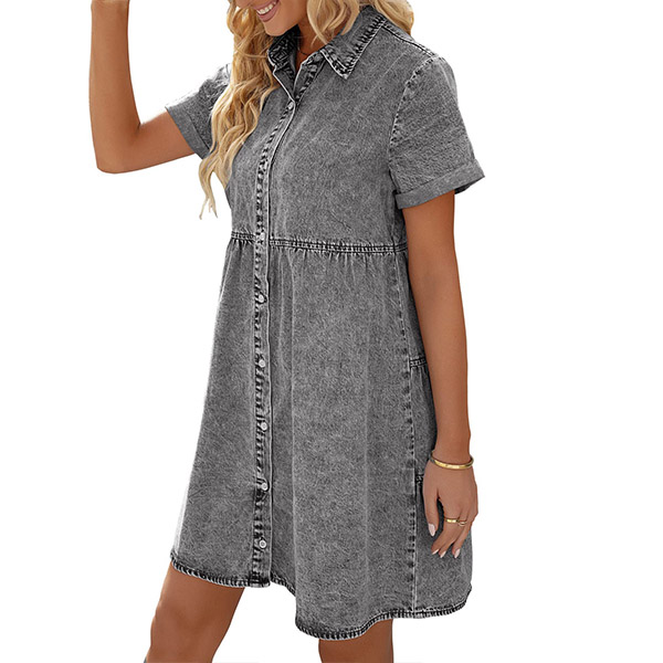 This maternity denim dress is made of cotton and denim, which is soft, comfortable, and breathable to wear. It is designed with a buttoned front, short sleeves, and polo neck.