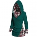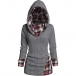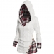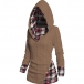 Casual Checkered Spliced Draped Neck Buttoned Long Sleeve Hooded Shirt