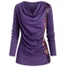 This casual shirt features a solid color with a classic checkered pattern spliced, which gives it a timeless look, while the draped neck and side button-down decoration give it a modern twist. Multi-color is available.
