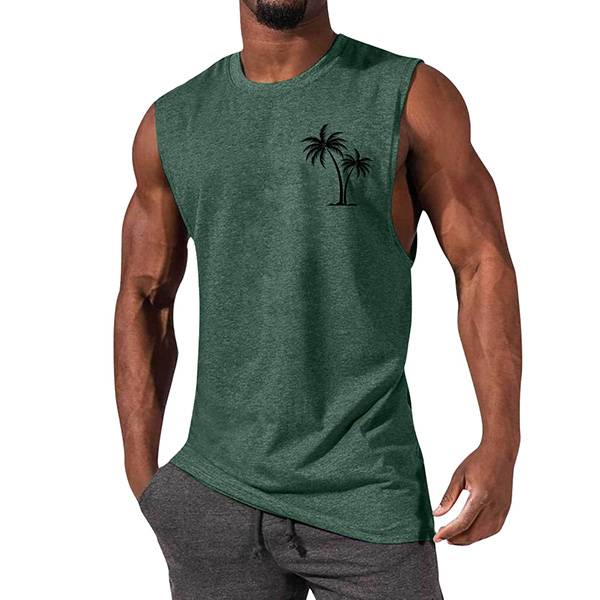 Casual Coconut Tree Printed Round Neck Sleeveless Tank Top for Men