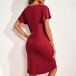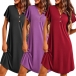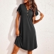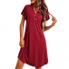 Casual Comfy Button V-neck Ruffle Short Sleeve Nightwear Dress