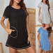 Casual Comfy Short Sleeve Patch Pockets Pajamas Dress