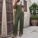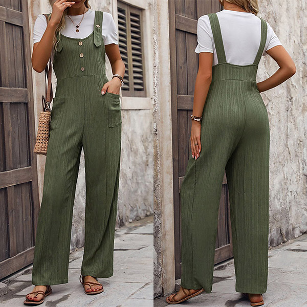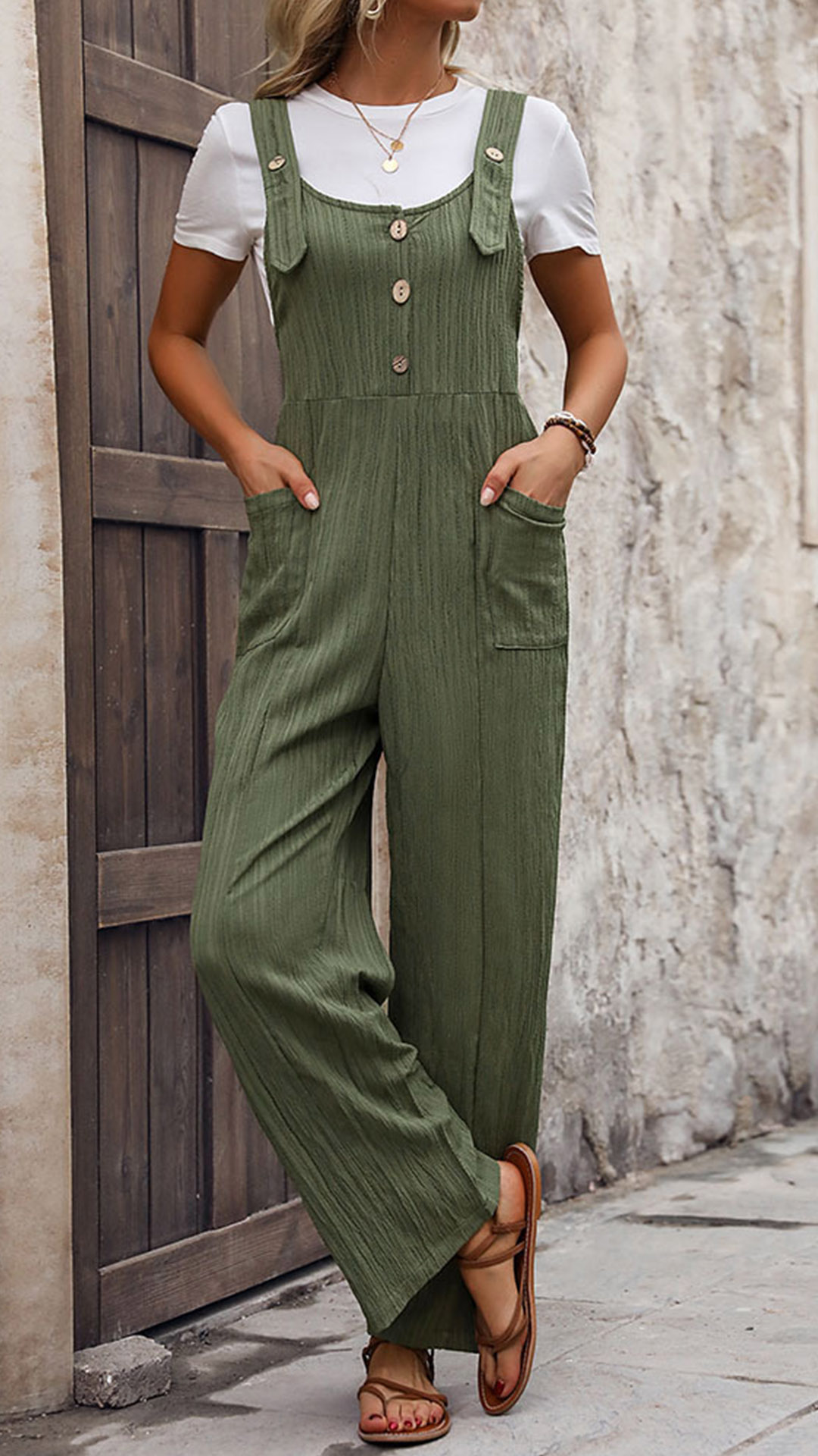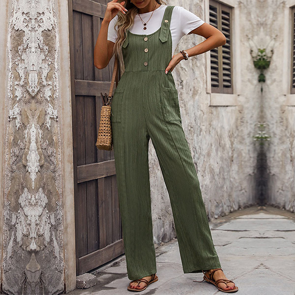 Casual Comfy Solid Color Button Straight-cut Jumpsuit
