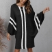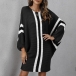 Casual Contrast Color Batwing Sleeve Knitted Dress