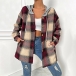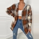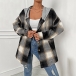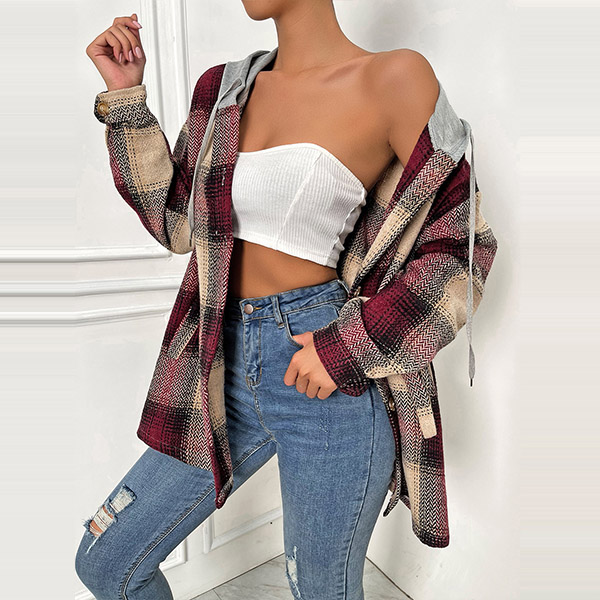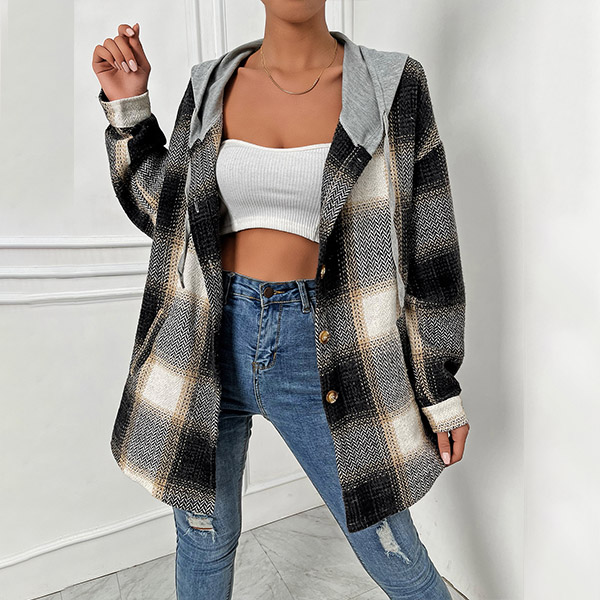 Casual Contrast Color Checkered Hooded Jacket