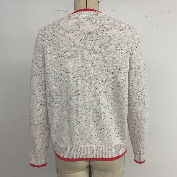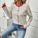 Casual Contrast Color Crew Neck Long Sleeve Front Button Knitted Cardigan