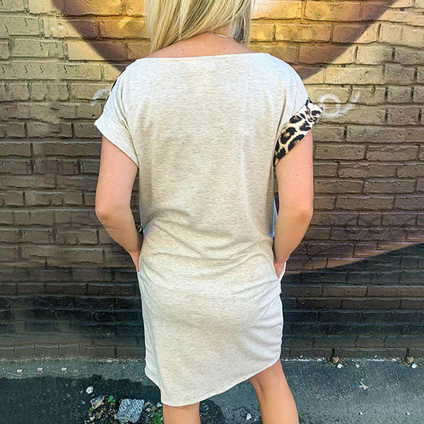 Casual Contrast Color Leopard Printed Round Neck Short Sleeve Mini Dress