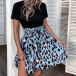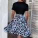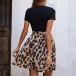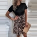 Casual Contrast Color Leopard Printed Round Neck Short Sleeve Self-tie Mini Dress