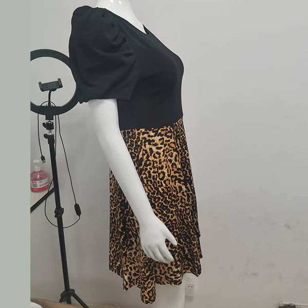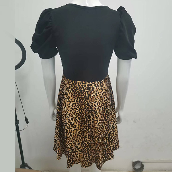 Casual Contrast Color Leopard Printed Short Sleeve Mini Dress