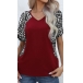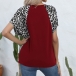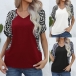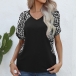 Casual Contrast Color Leopard Printed V-neck Short Sleeve Shirt