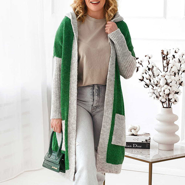 Looking for a cozy and stylish cardigan to take your outfit to the next level? This Cardigan is perfect! Made from a soft and comfortable material, it features a trendy hood and contrast colors that will make you stand out from the crowd. Pair it with your favorite jeans and boots for a casual and chic look.