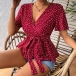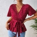 Casual Contrast Color Printed V-neck Short Sleeve Self-tie Shirt