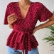 Featuring a contrast color print, V-neck, short sleeve, self-tie waist and ruffled hemline design, this shirt perfect to pair with jeans, shorts, or a skirt for a chic and effortless ensemble.
