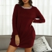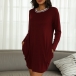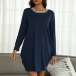 Casual Contrast Color Round Neck Long Sleeve Side Pocket Dress
