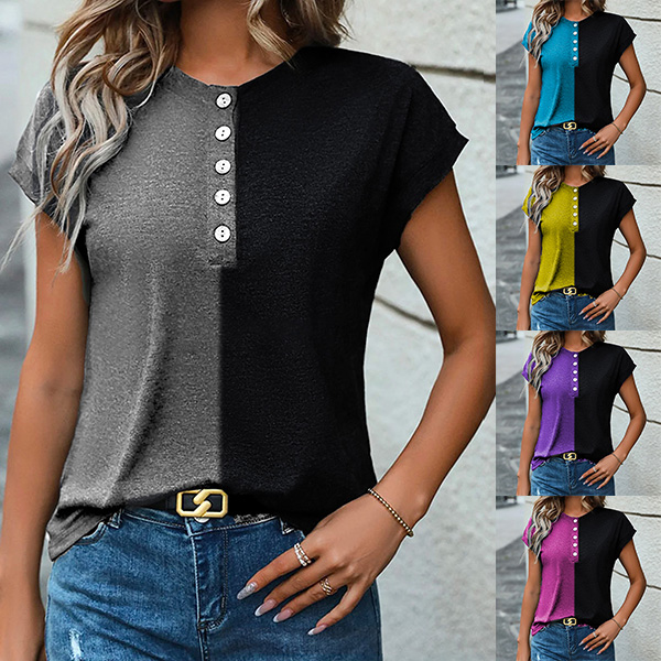 Casual Contrast Color Round Neck Short Sleeve Shirt