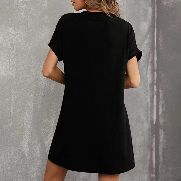 This fun and flirty mini dress is perfect for a daily wear! The sequin detail adds a touch of glam, while the contrast colors keep it casual. The round neck and short sleeves keep it comfortable and easy to wear.