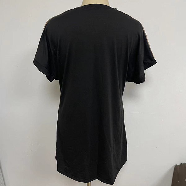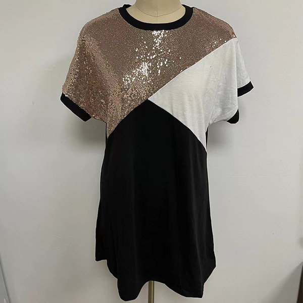 Casual Contrast Color Sequin Round Neck Short Sleeve Mini Dress