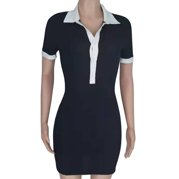 Looking for a summer dress that's both stylish and comfortable? Look no further than this Bodycon Dress. Made from a soft and stretchy material, this dress is perfect for a day spent in the sun. The contrast colors and button details add a touch of style, while the short sleeves and polo neck make it perfect for a hot summer day.