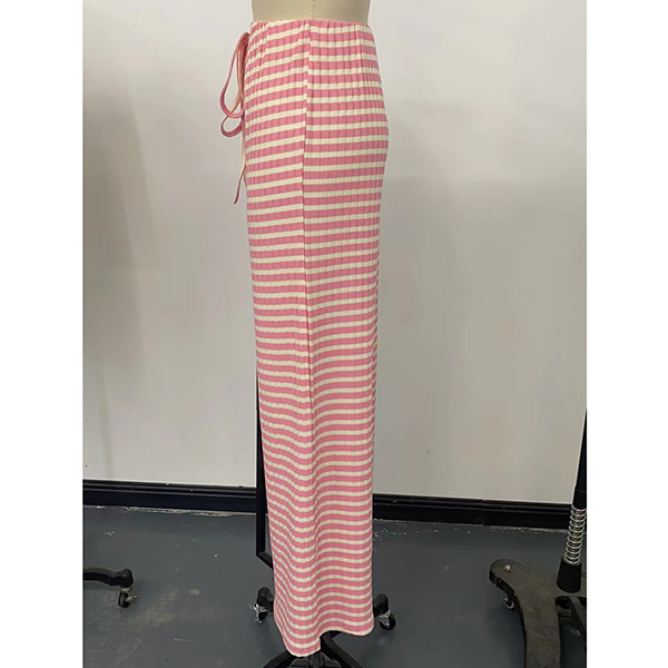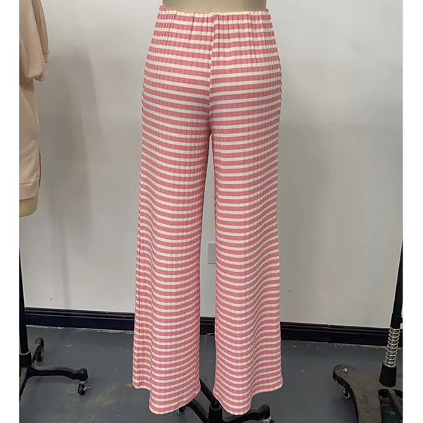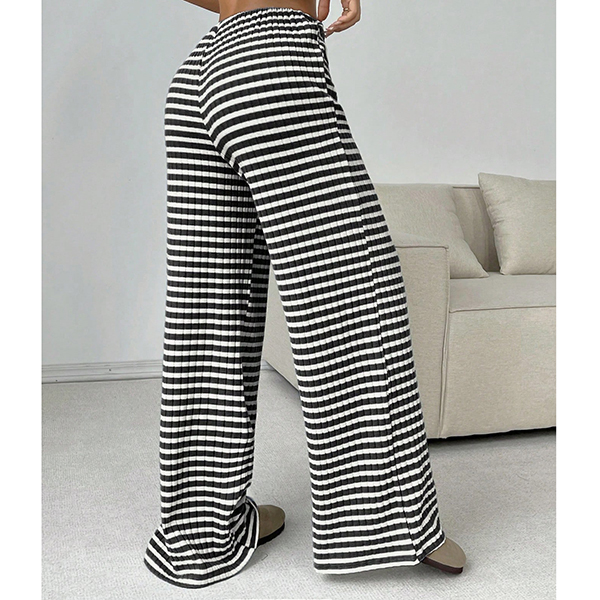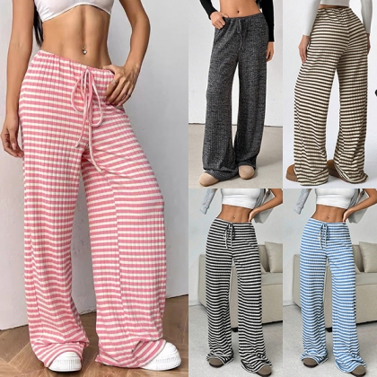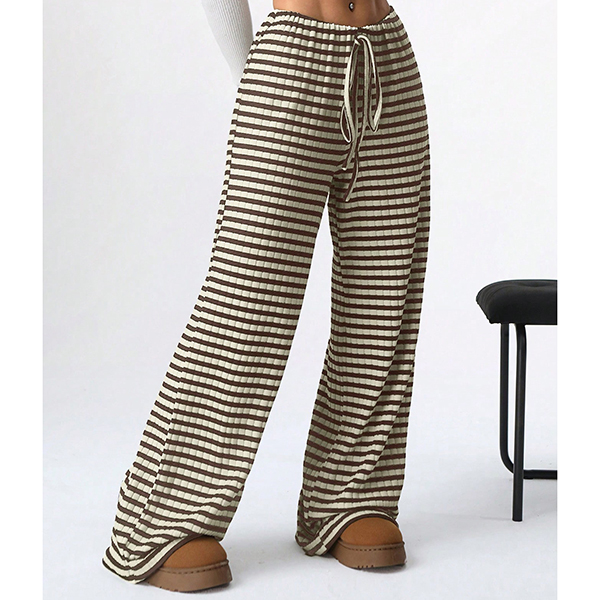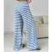 This relaxed pants brings effortless comfort through playful pattern and functional design elements. The contrast color stripe pattern adds dynamic visual movement and graphic appeal that transforms simple loungewear into engaging everyday pieces, while the drawstring waistband provides adjustable comfort and laid-back functionality. Style them with coordinating stripe tops for pattern play, pair with solid colors to highlight the graphic elements, or wear with neutral pieces to let the pants create visual interest while maintaining their relaxed character and supreme comfort.