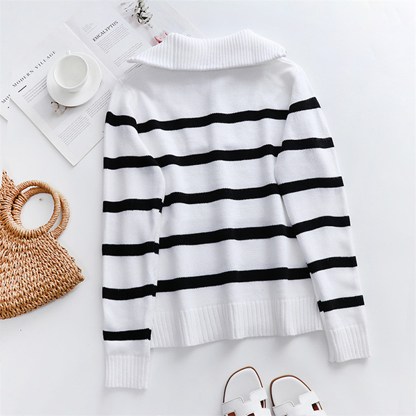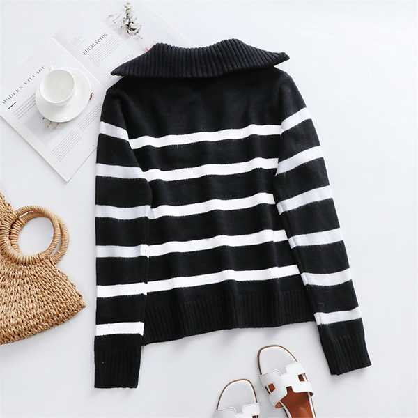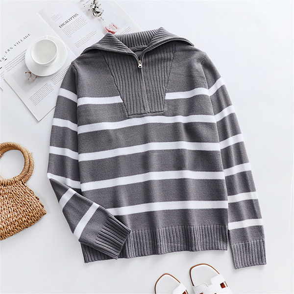 Casual Contrast Color Stripe Printed Half-zipper V-neck Long Sleeve Knitted Shirt