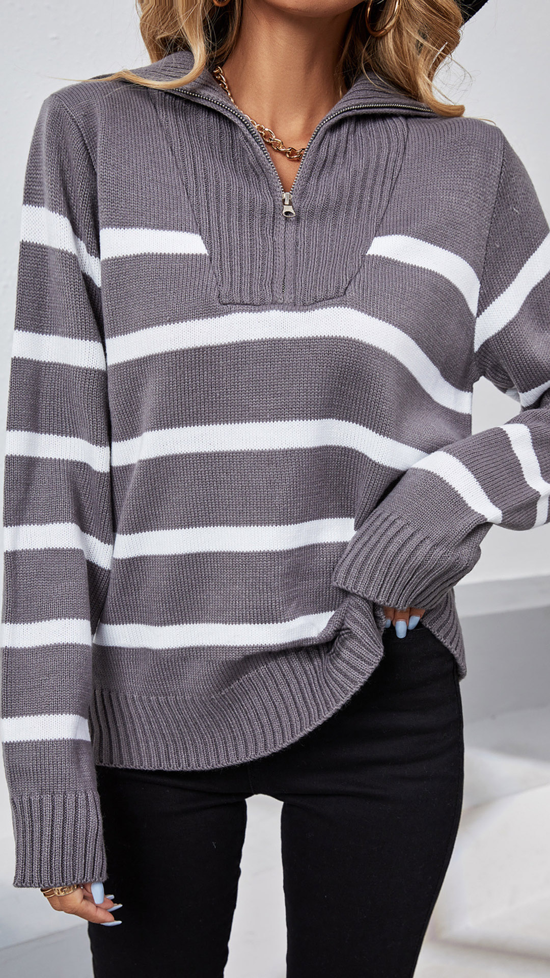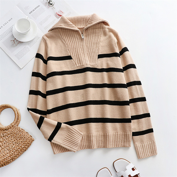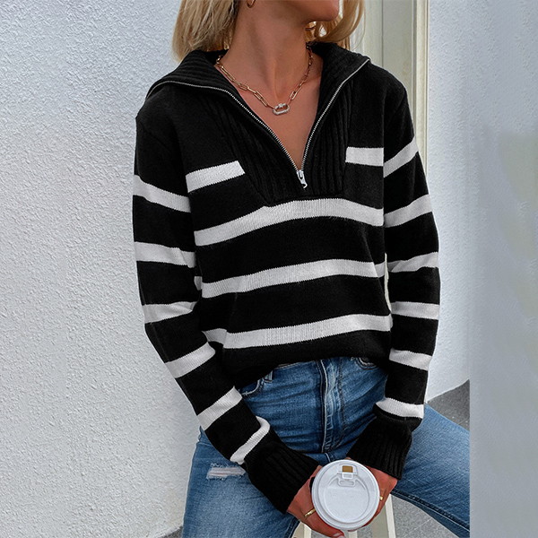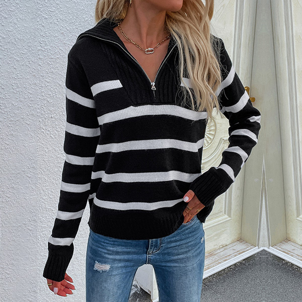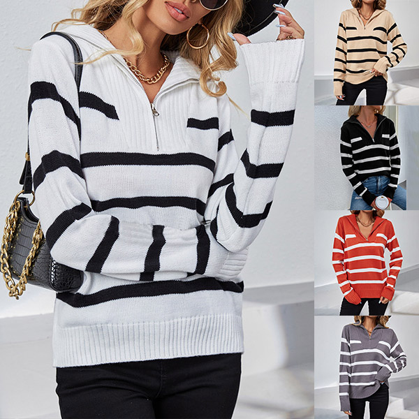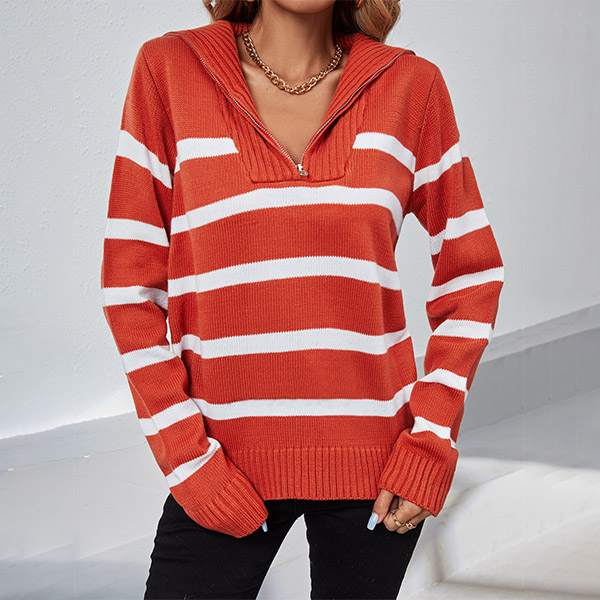 This knitted shirt's stylish design features a half-zipper closure, a V-neckline, and long sleeves, all in a comfortable knitted material. The bold contrast color stripes add a unique touch, while the relaxed fit ensures all-day comfort. Whether you're heading out for a casual day or a night on the town, this shirt is sure to keep you looking stylish and feeling great.