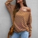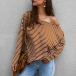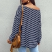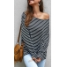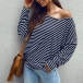 Casual Contrast Color Stripe Printed One-shoulder Long Sleeve Shirt