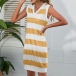 This dress combines style and comfort, making it a perfect choice for casual occasions. The contrast color stripe print adds a modern and eye-catching element, while the V-neckline adds a touch of femininity. Wanna have a try?