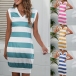 Casual Contrast Color Stripe Printed V-neck Sleeveless Dress