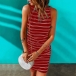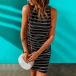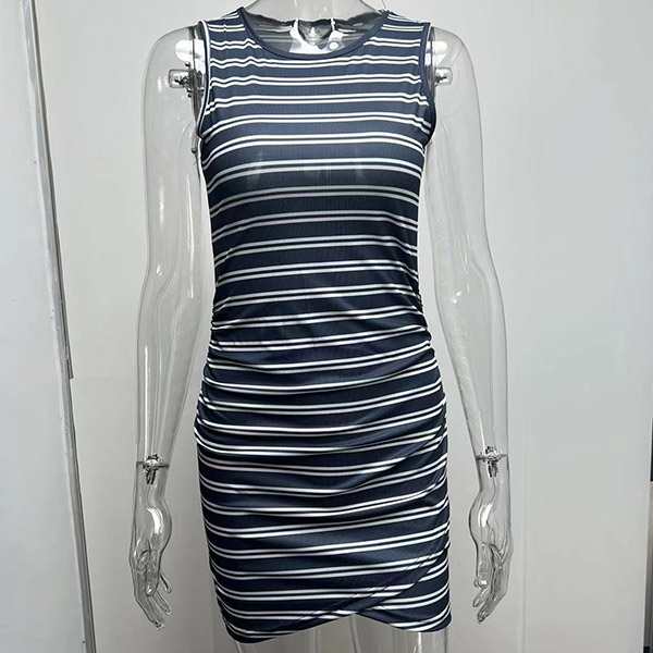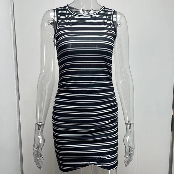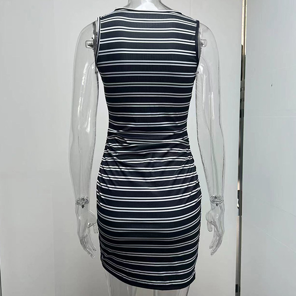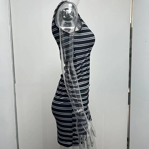Looking for a casual yet stylish dress? How about this one? The sleeveless design and contrast color stripes make this dress both comfortable and fashionable. The bodycon fit is flattering and shows off your curves. Pair this dress with your favorite sneakers or sandals for a complete look.
