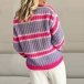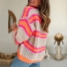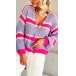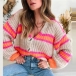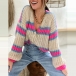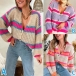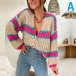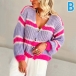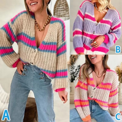 This cardigan features a V-neckline, long sleeves, and a contrast color stripe pattern. The cardigan is made of a soft material that will keep you warm all day long.