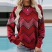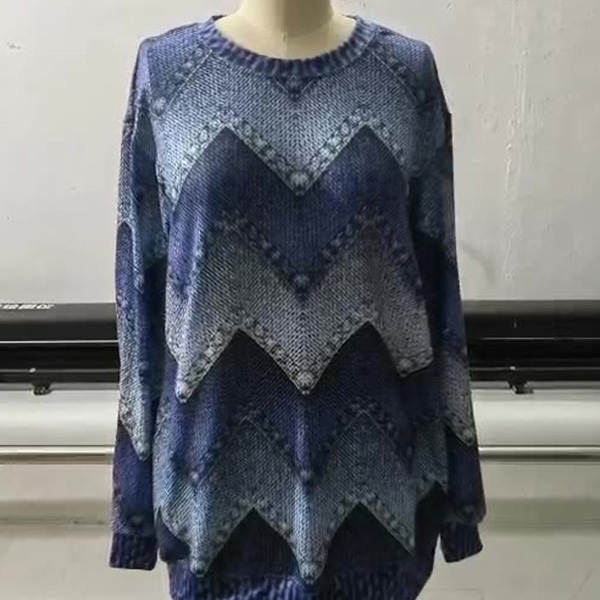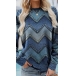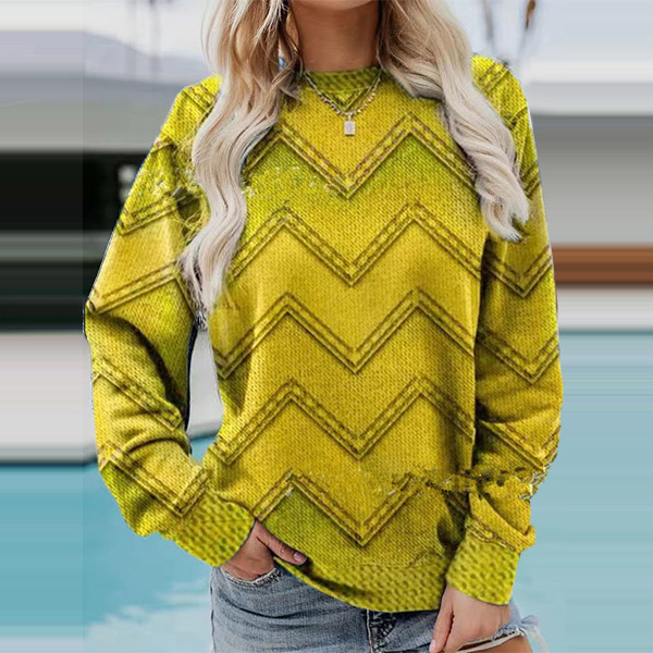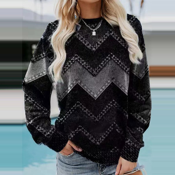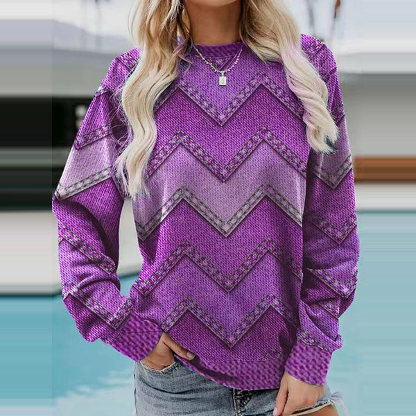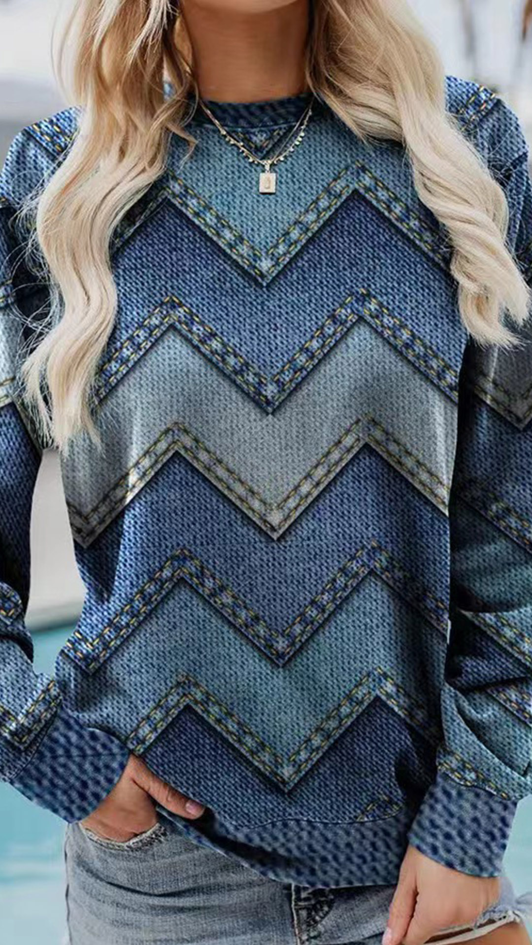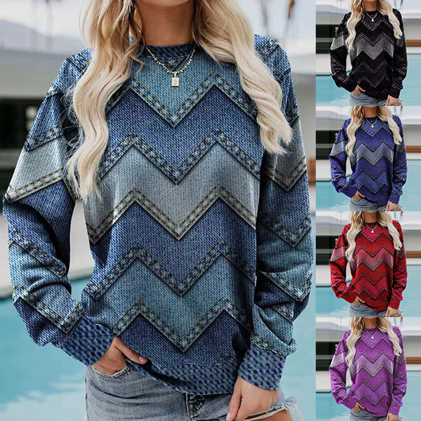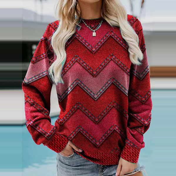 Casual Contrast Color Wave Pattern Round Neck Long Sleeve Shirt