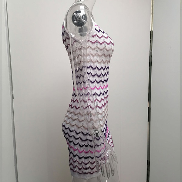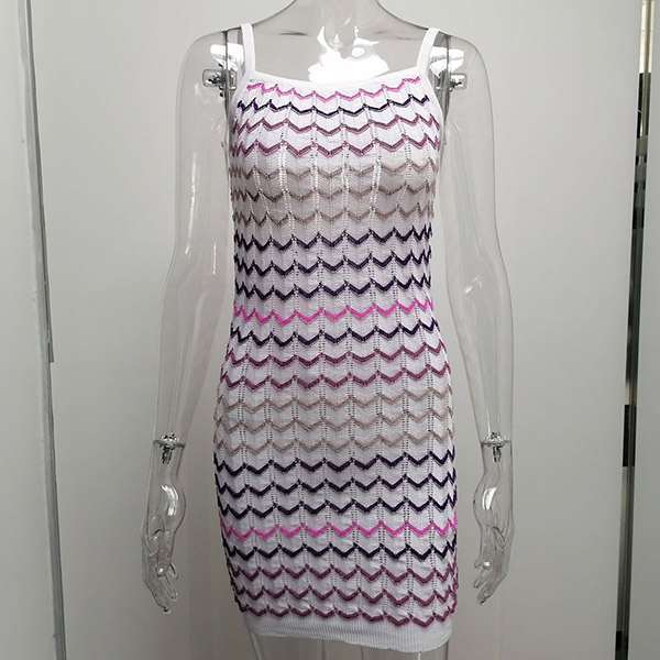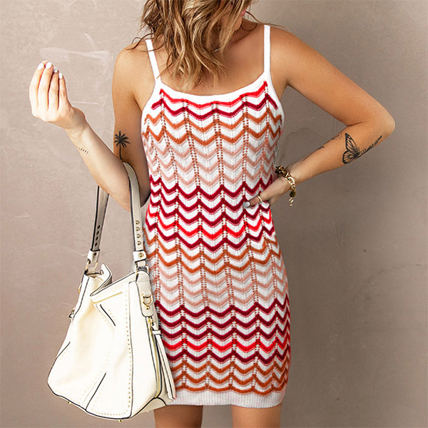 Casual Contrast Color Wavy Printed Knitted Bodycon Slip Dress