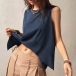 Casual Crew Neck Irregular Hemline Sleeveless Shirt