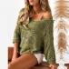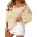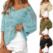 Casual Crew Neck Long Sleeve Hollow Out Knitted Shirt