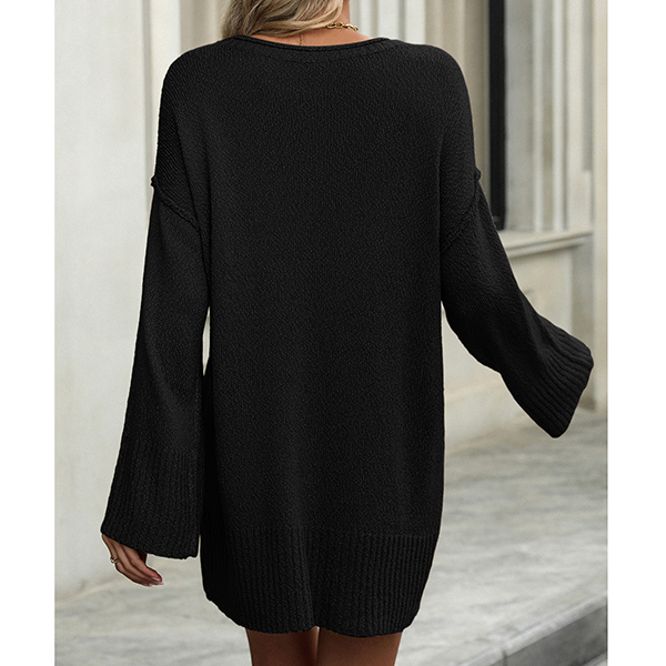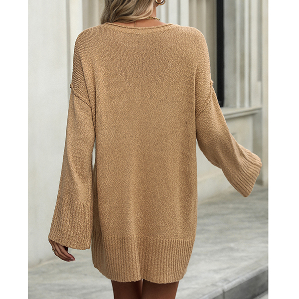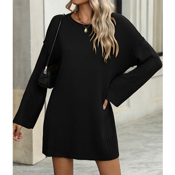 Casual Crew Neck Long Sleeve Mini Sweater Dress