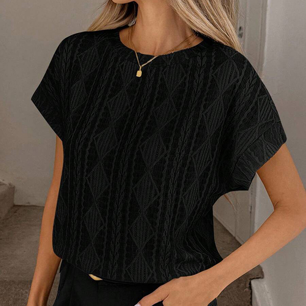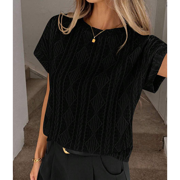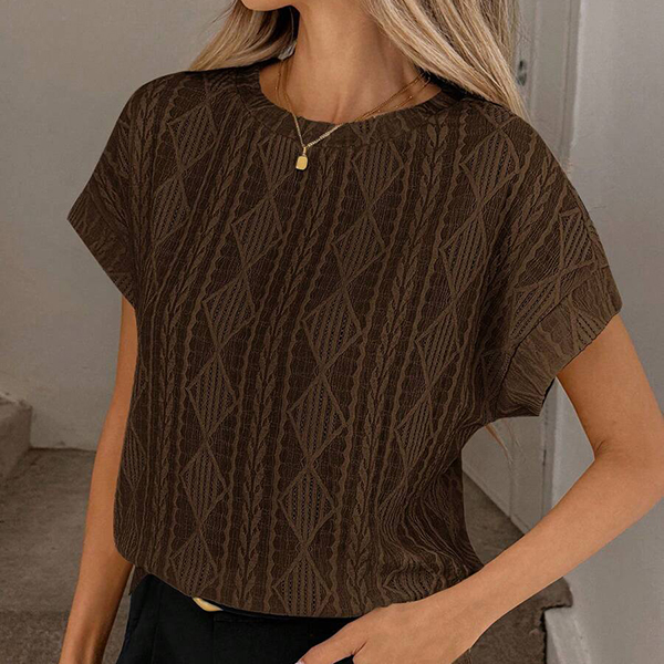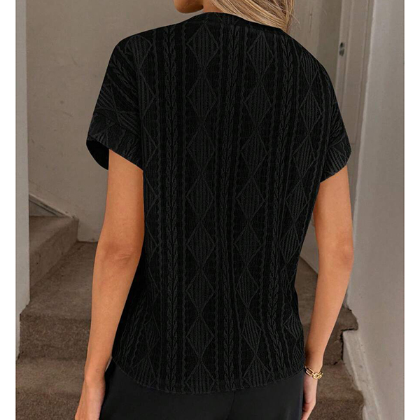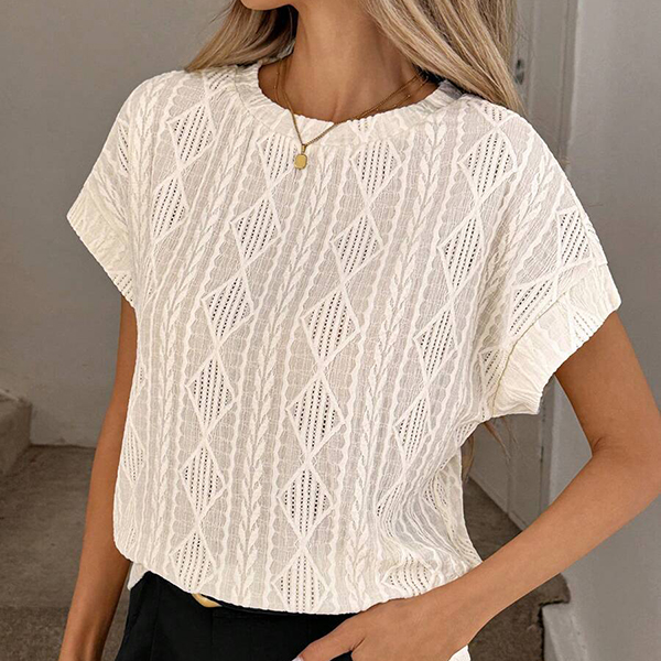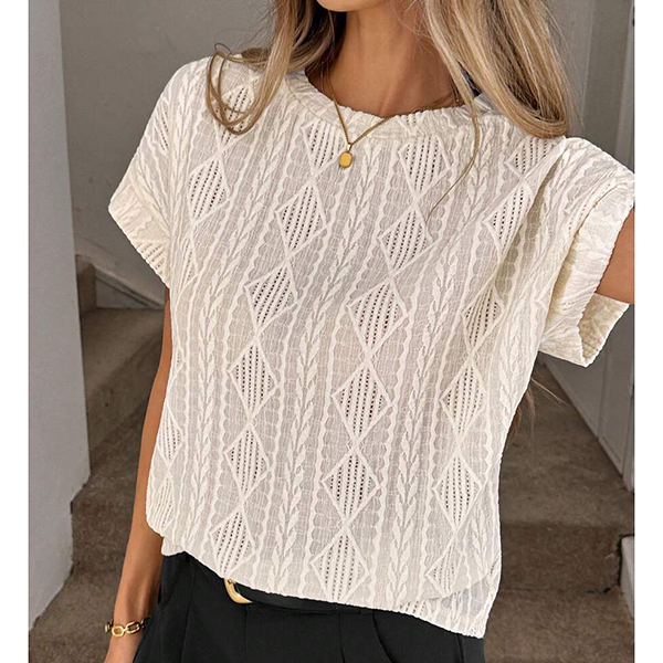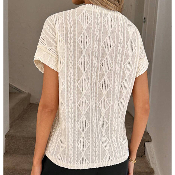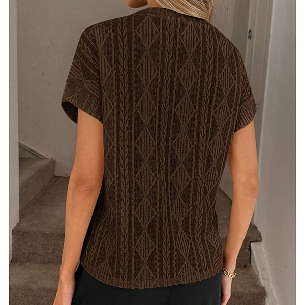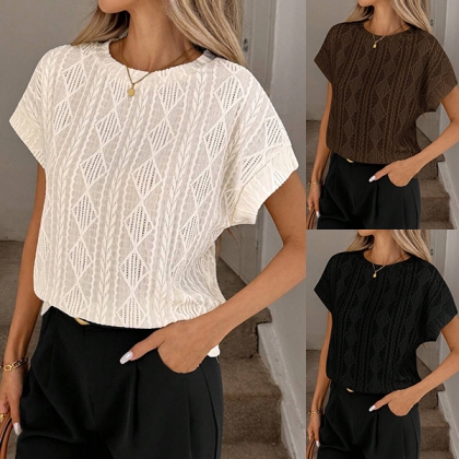 Casual Crew Neck Short Sleeve Jacquard Shirt