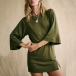 This is a chic and versatile dress that combines comfort with modern style. The classic crew neck design offers a timeless and understated look, perfect for a range of occasions from casual outings to relaxed weekends. The side slits add a touch of flair and movement to the dress, creating a contemporary and on-trend look that is both stylish and comfortable. Multi-colors avabile.