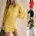 Casual Crew Neck Short Sleeve Side Slit Mini Dress