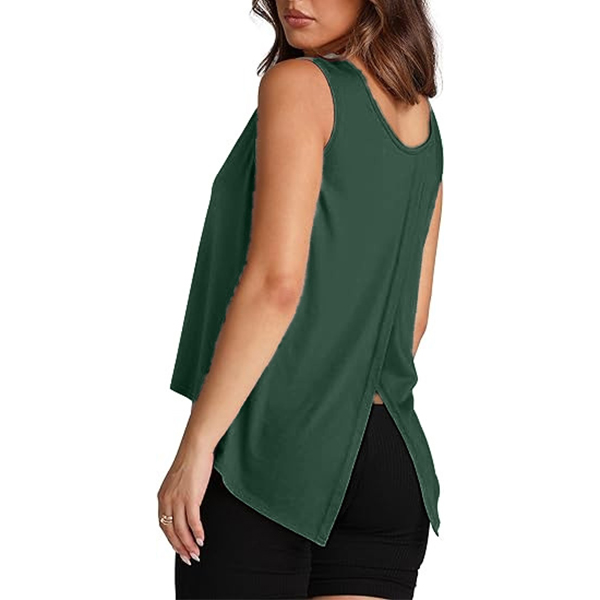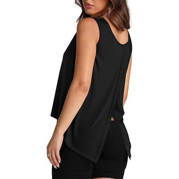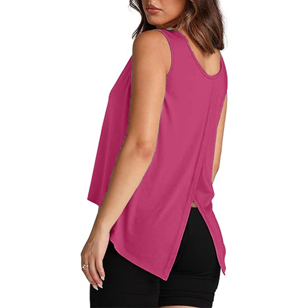 Casual Crew Neck Sleeveless Back Slit Tank Top