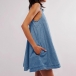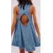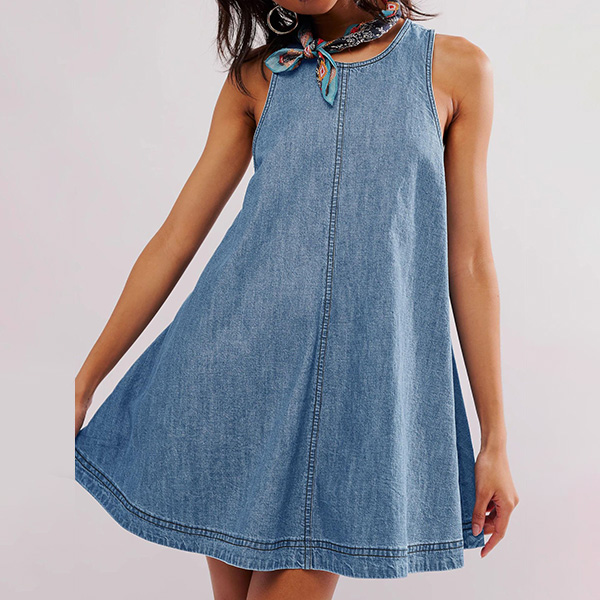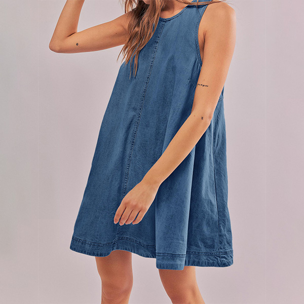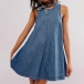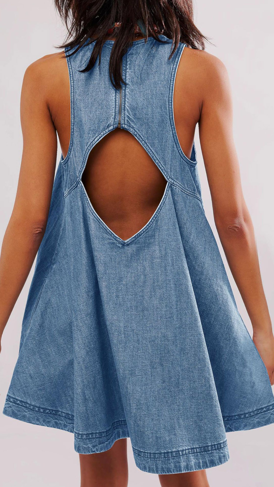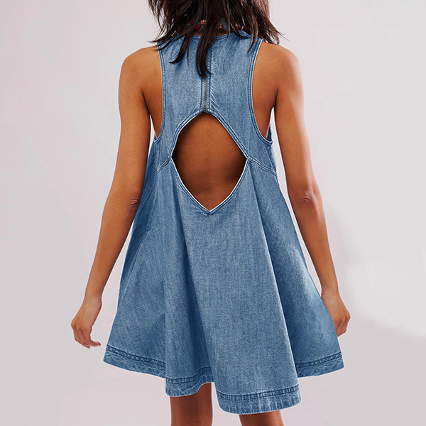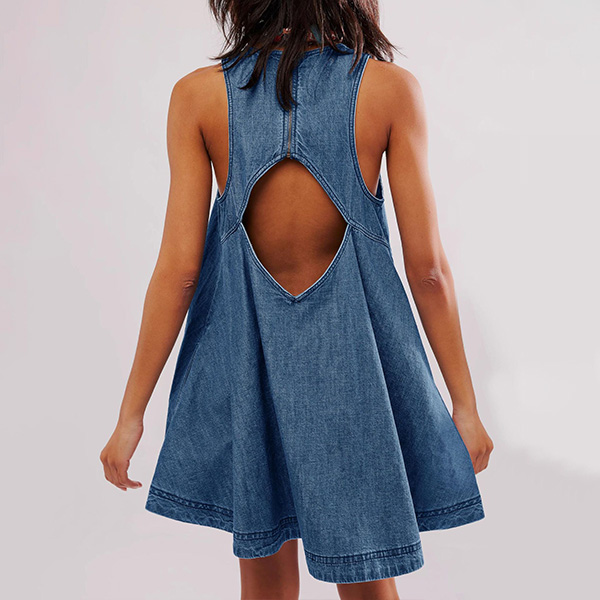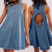Casual Crew Neck Sleeveless Backless Denim Dress