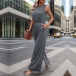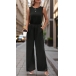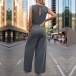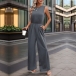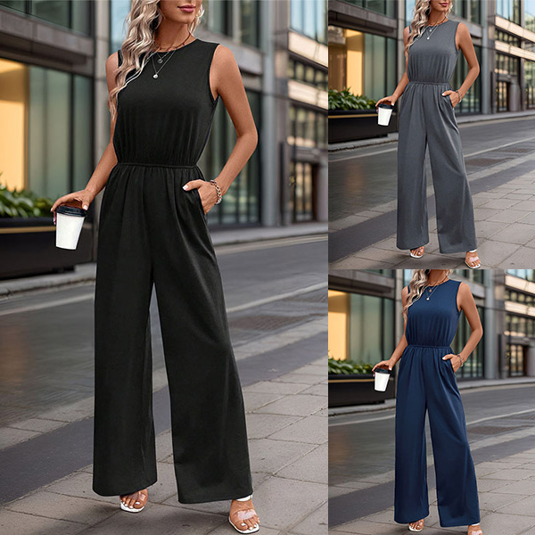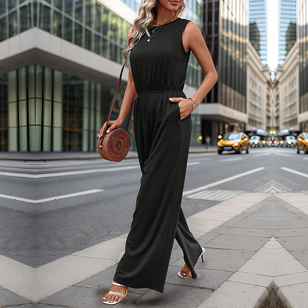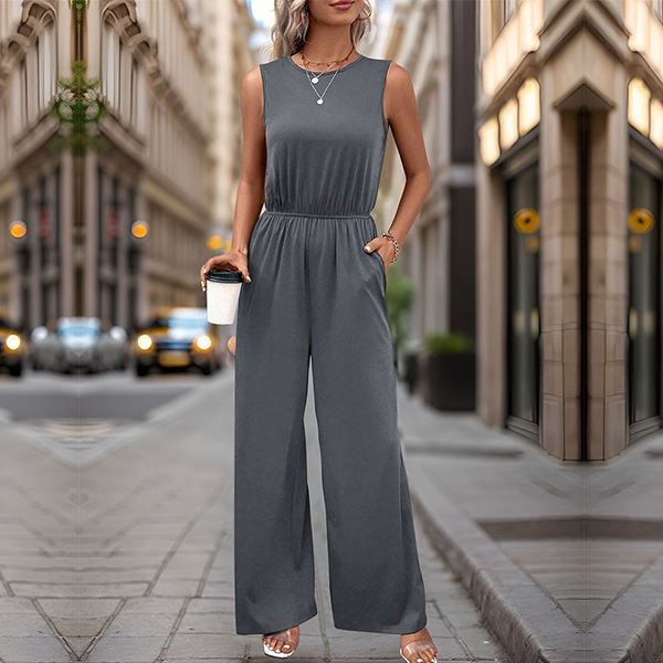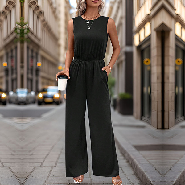 Casual Crew Neck Sleeveless Elastic Waist Straight-cut Jumpsuit