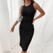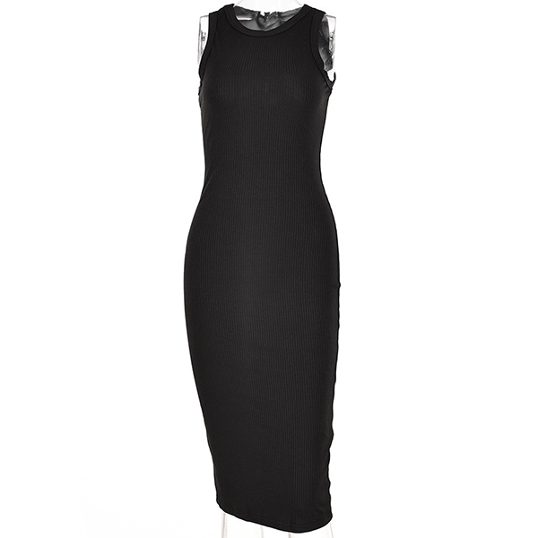 Casual Crew Neck Sleeveless Ribbed Bodycon Dress