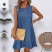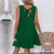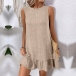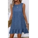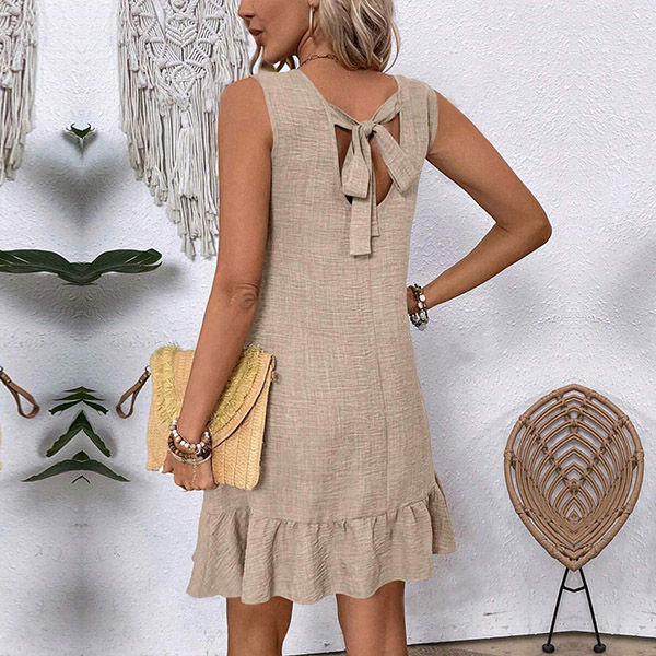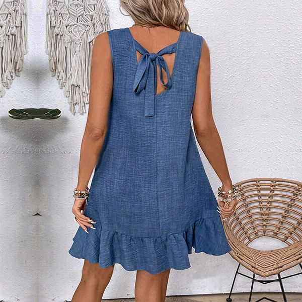 Casual Crew Neck Sleeveless Self-tie Backless Ruffle Hemline Mini Dress